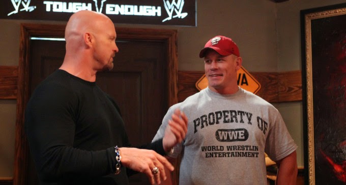 The camera pans out to find Stone Cold Steve Pupstin watching backstage.