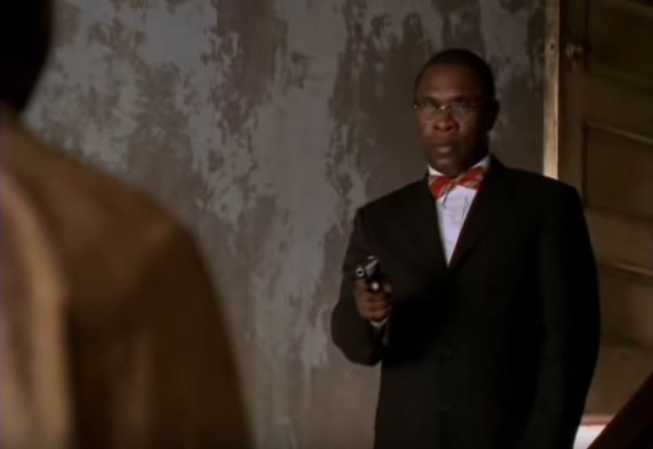 Before he can pull the trigger, Kenneth Bell's gun is shot out of his hand.